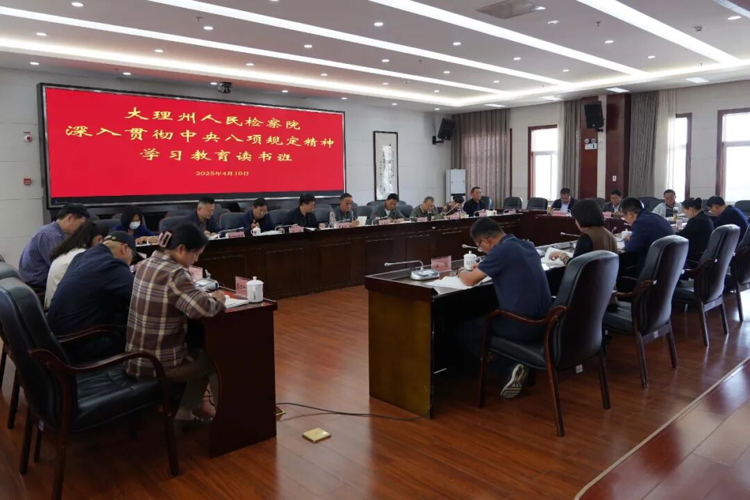 4月10日至11日,大理州人民检察院举办深入贯彻中央八项规定精神学习教育读书班暨党组理论学习中心组第二次集体学习,采取集中自学、研讨交流、个人自学等方式,认真学习领会习近平总书记关于加强党的作风建设的重要论述、中央八项规定精神及其实施细则精神,深入贯彻落实习近平总书记考察云南重要讲话精神。党组书记、检察长崔庆林主持会议并讲话,部分领导班子成员作交流发言。