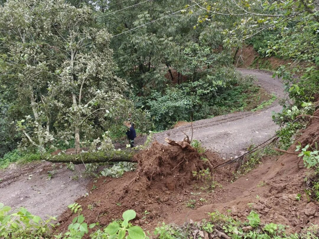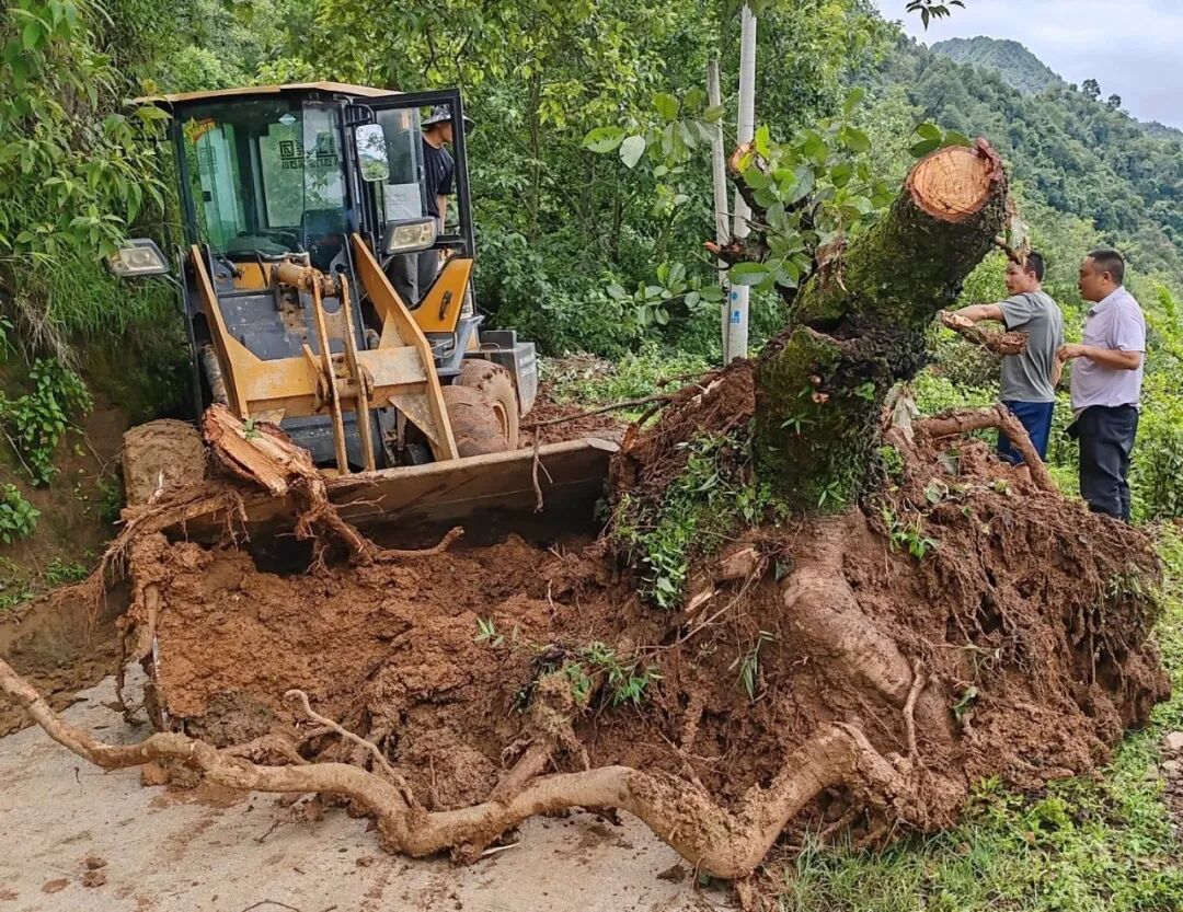 由于连续强降雨,只嘎村部分山地土壤松软易垮,在火山组至浪坝组K0+100m处,一棵大树倒塌并压断高压输电线路,10KV乌母嘎线电路及浪坝组向外出行的交通要道均被阻断。只嘎村新任党总支书记何志元率先垂范,冲在前面、干在难处,亲自驾驶装载机前往最危险的作业区域清理倒塌树木和塌方土石,配合电力保障工作人员,快速恢复道路和电力畅通,充分彰显了基层党组织的战斗堡垒作用。