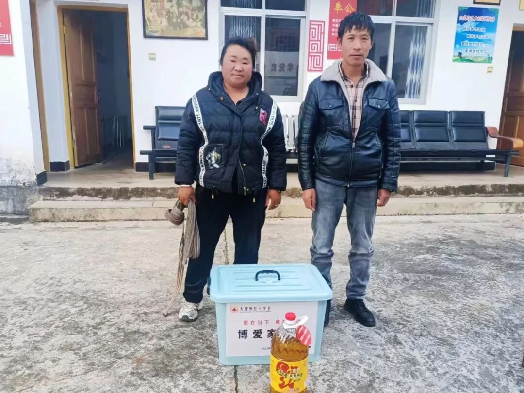 驻村第一书记、工作队长张猛代表州检察院为困难群众送上毛毯、米、食用油等慰问物资。